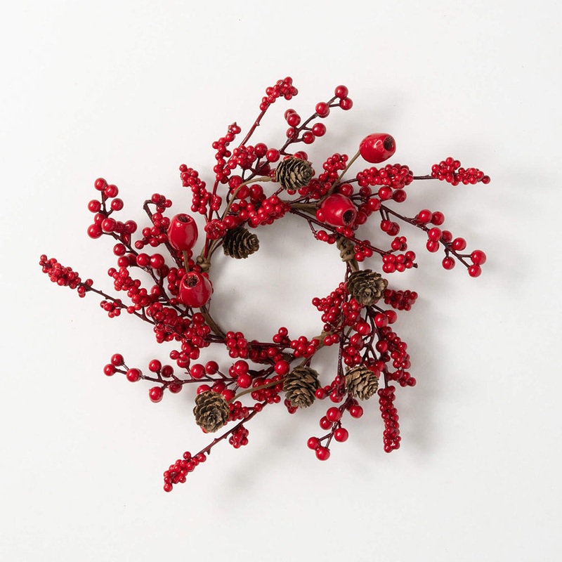This festive Red Berry Pod Ring makes the perfect accent for Christmas candles! It features beautiful berry clusters accented with berry pods and pinecones.