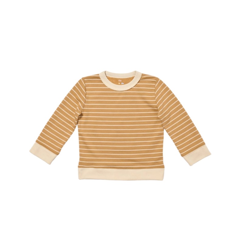 Oso and Me makes childrens clothing thats easily worn, easily washed, and makes getting dressed fun. Sustainably crafted, with growing kids in mind, these high-quality pieces are made an eye for detail, and to last. The Remy Sweatshirt in Camel French Stri