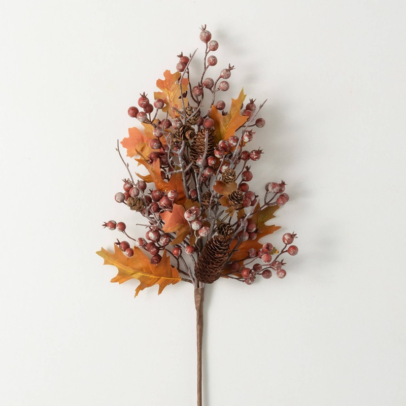 This exclusive Rustic Fall Berry Leaf Spray BLFSP brings the colors of the season indoors. This generous-sized statement piece features mixed colorful berries and subtle leaves, perfect for your home during the cozy autumn season. Great for a dining table centerpiece, mantle display or side table accent, this kaleidoscope of fall colors is a perfect enhancement for a variety of decor styles.