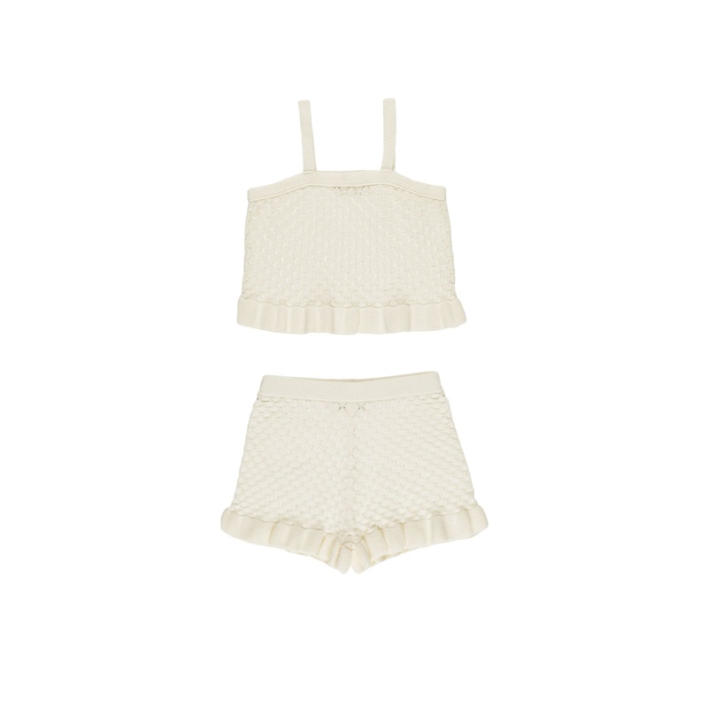 With cute peplum detail, this breezy Knit Tank Set is a sure summer staple.Featuring our airy ivory hue.Care: Machine wash cold. Lay flat to dry.Made of 100% cotton.