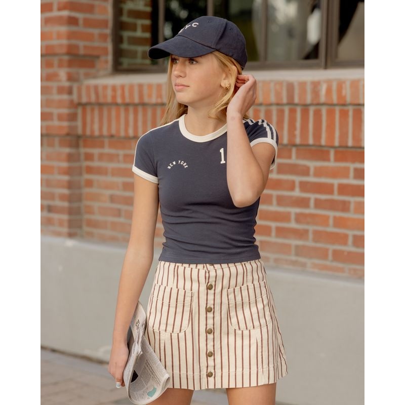 Rylee + Cru Denver Mini Skirt | Burgundy Pinstripe – Teen