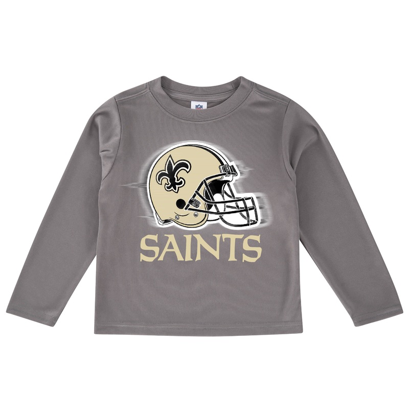 Hell be ready to cheer on the team with this long sleeve logo tee! This baby boys officially licensed New Orleans Saints made with a soft poly interlock which is comfy and easy to clean. The screen print Saints logo is featured front and center.