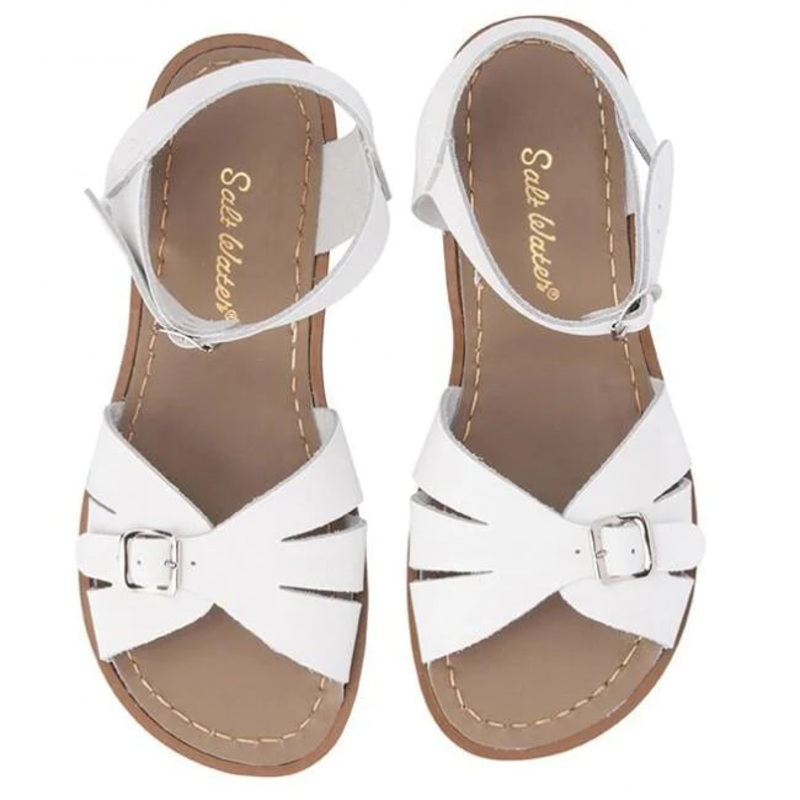 Product: Salt Water Sandals Classic in WhiteThe Salt Water Classic has a hand-stitched, non-slip, moulded rubber sole with adjustable straps which makes them great for those who want something other than a standard fitting sandal. Loved by cool kids, both