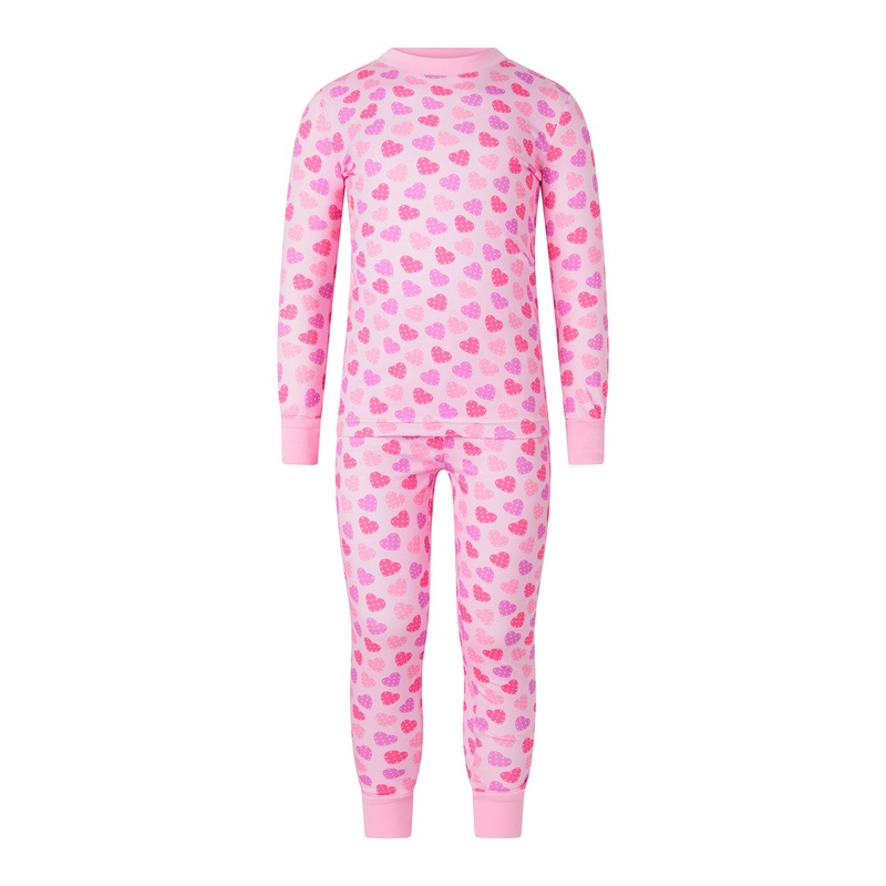 Premium soft cotton long sleeve, long trousers jersey pajama set with a fun scatter heart print for a perfect day to night outfit for all little ones!95% Cotton / 5% Elastane
