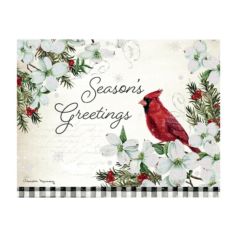 These beautiful Season's Greetings Christmas Boxed Cards are perfect for sharing with family and friends. They are printed on linen-embossed paper and feature a stunning cardinal surrounded by lovely flowers and holly berries.Artist: Danielle MurrayContain