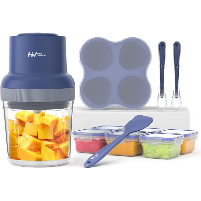 HEYVALUE Baby Food Maker, 13-in-1 Baby Food Processor Sets, Fruit, Vegatable, Meat, Food Puree Blender with Baby Food Containers, Food Freezer Tray, Silicone Spoons, Silicone Spatula (Dark Blue) Save Big, Blend WellThis HEYVALUE Baby Gift Set comes with si