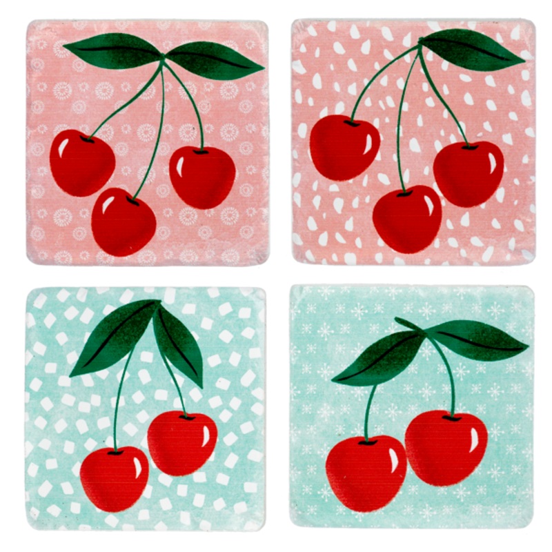Set of 4 Retro Cherry Pattern Coasters CB178740