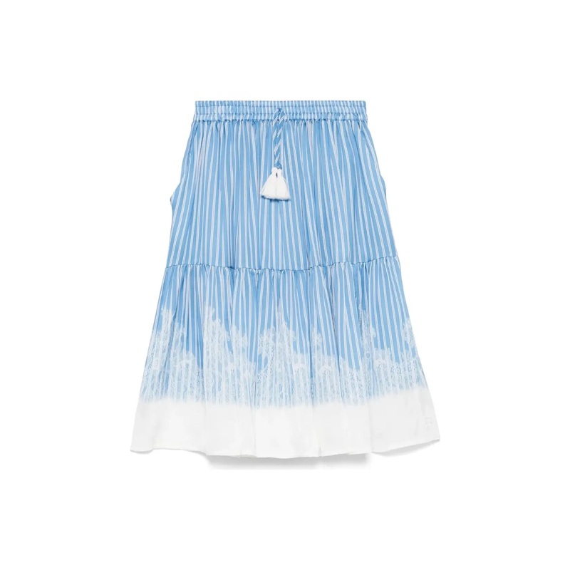 ENW11017055SFGO023-STRIPE SKIRT SATIN-White/Blue