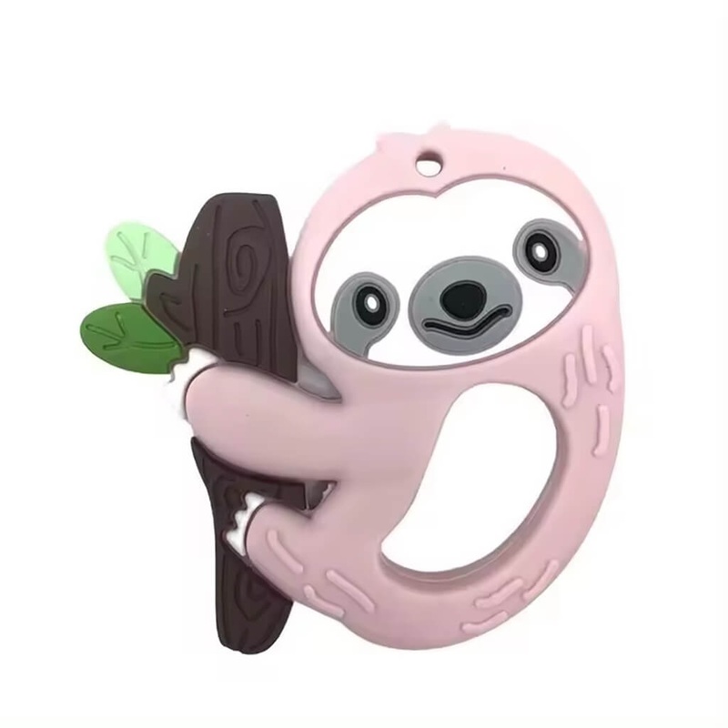 A charming and functional silicone sloth teething toy idesigned to help soothe teething babies.Made from high-quality, food-grade silicone, the teething toy is soft yet durable, ideal for babies to chew on.The silicone material is gentle on tender gums, an