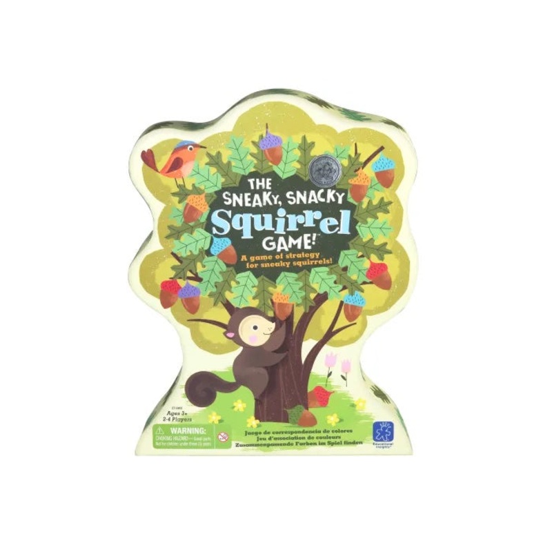 Your forest friends are hungry and they need your help. Spin the spinner, squeeze the matching colored acorn with your Squirrel Squeezers and place it into your log. Be the first to fill your log with delicious acorns and you win. You could also spin pick an acorn, steal an acorn, or lose an acorn, so be strategic, little squirrel. For 1-4 players. For ages 3 and up. WARNING: CHOKING HAZARD – Small Parts. Not for children under 3yrs.
