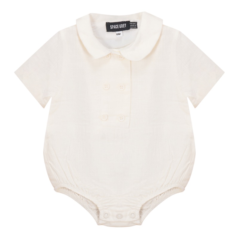 B39868372Space Grey Ivory Linen Double Breasted Shirt Romper