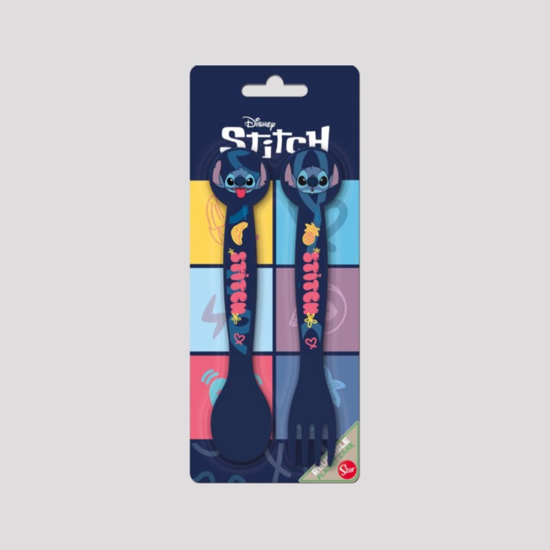 Make mealtime an adventure with the Stitch 2-Piece Flatware Set in Navy. Made from durable plastic, this set includes one fork and one spoon, making it perfect for little explorers. Let your child dine with their favorite characters, creating an exciting m