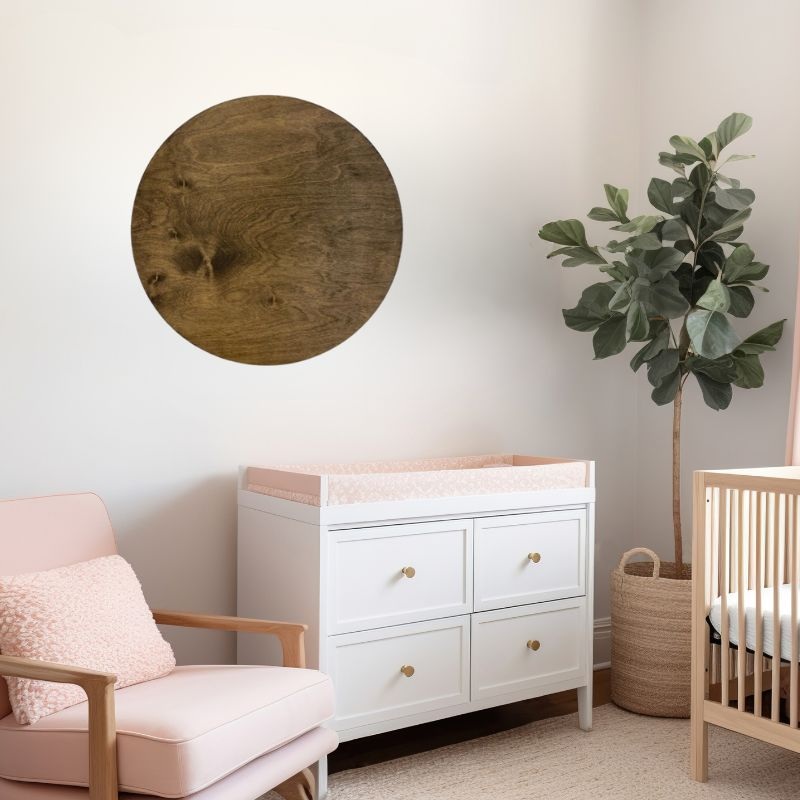 This beautifulchocolate stain is theidealbackdropto showcasethat perfect name you picked out!MEASUREMENTS24" diameterBackground 1/2" thickLetters 1/4" thickHANGINGComes with a separate sawtooth hanger that can be easily installed with a screwdriver!DESIGN