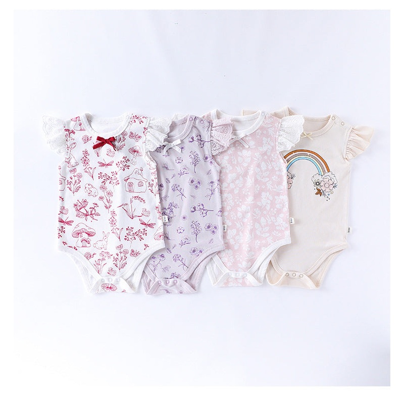 Summer Arrival Baby Girls Fly Sleeves Floral Pattern Onesies Bodysuits