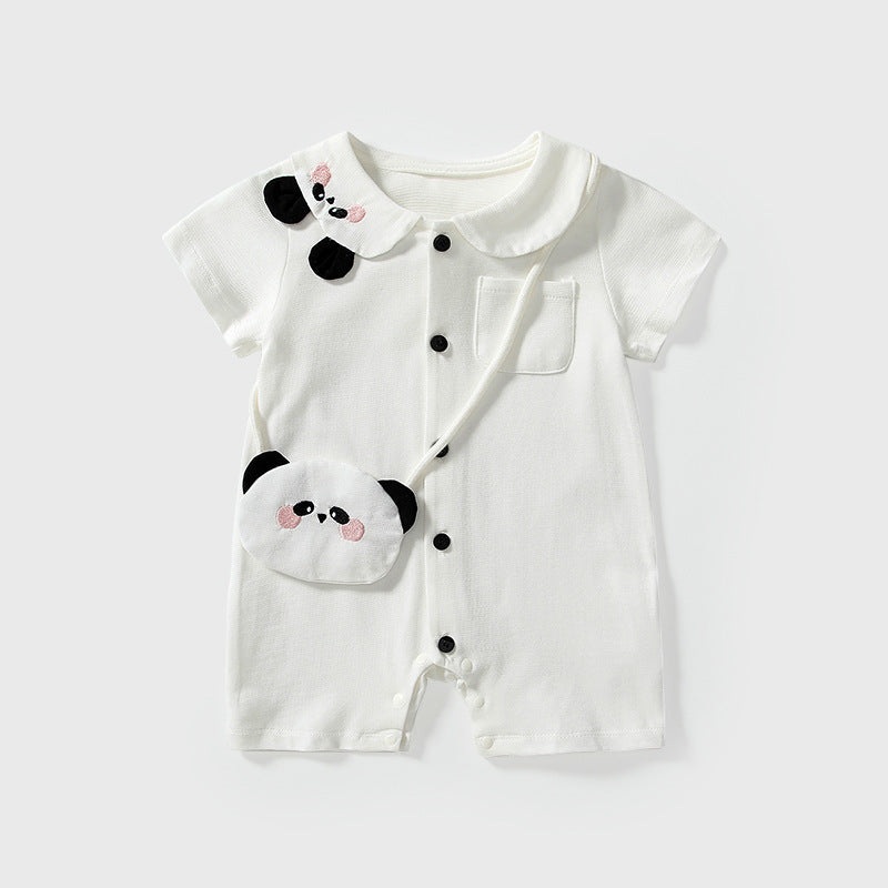 This charming unisex baby romper features short sleeves and an adorable panda pattern, perfect for warm summer days. Crafted for comfort and ease, it allows your little one to stay cool while looking effortlessly stylish. Ideal for everyday wear, this romp