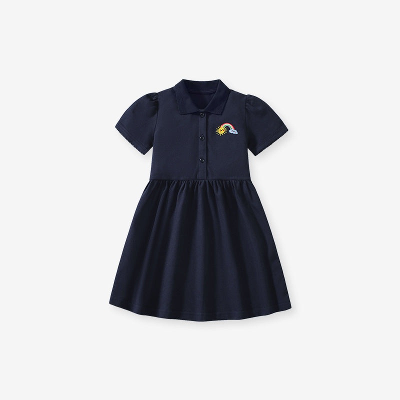 Brighten up sunny days with this playful rainbow-patterned polo dress, perfect for stylish girls who love fun and comfort. Featuring short sleeves and a classic polo collar, its ideal for warm weather adventures while keeping a cheerful, colorful vibe. Eas