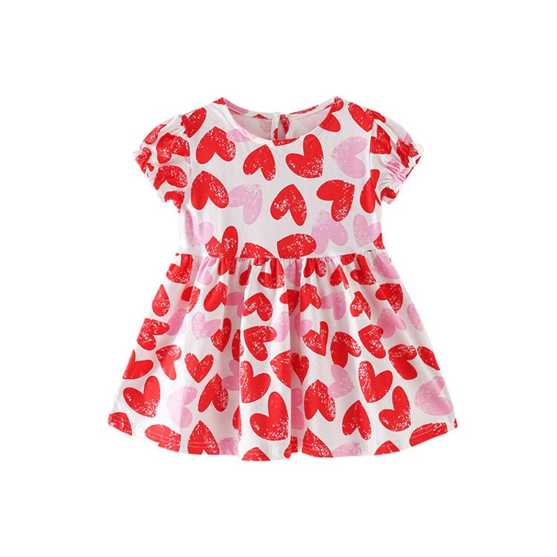 GWIL528537527Summer Arrival Red Heart Pattern Short Sleeves Cute Dress for Stylish Girls