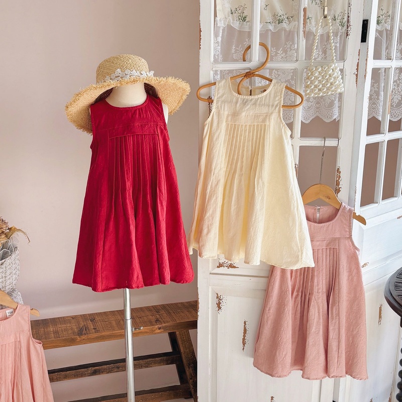 This sleeveless dress features a classic crew neck and a solid color design, perfect for stylish girls embracing the summer season. Its simple yet elegant silhouette offers comfort and ease of movement, making it an ideal choice for warm days and casual outings. Crafted to combine timeless style with practicality, this dress enhances any young wardrobe with understated sophistication.