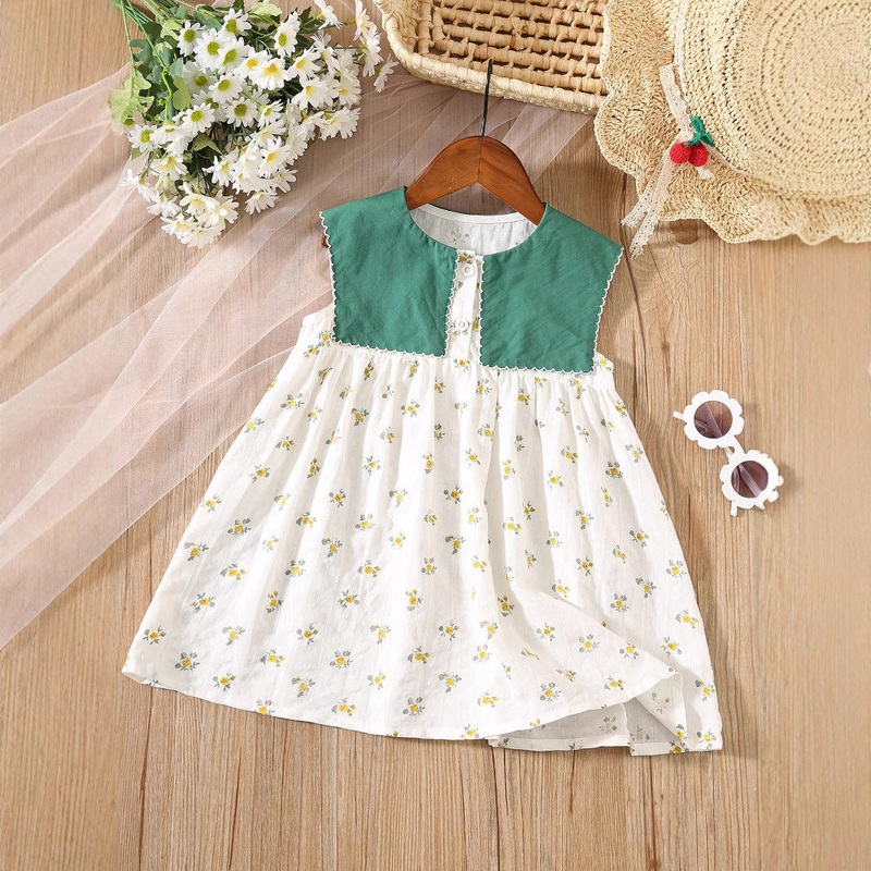 GWIL528538184Summer Baby Kids Girls Floral Sleeveless Color Patchwork Collar Dress