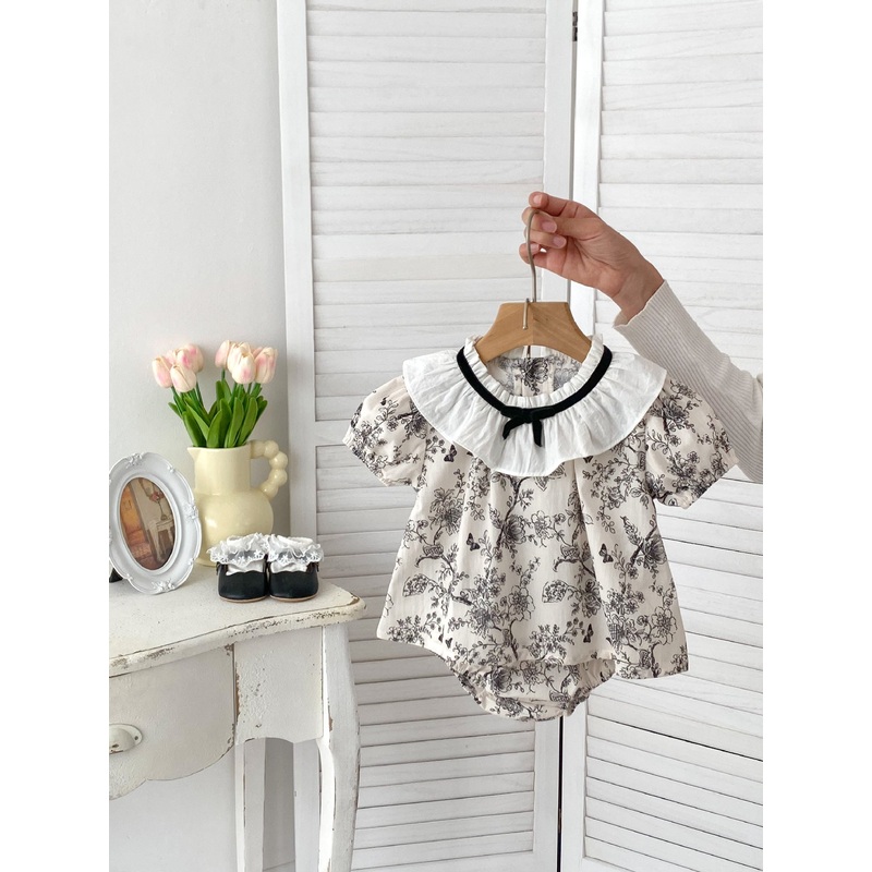 Artful & Adorable Features a fun ink splatter floral print that adds a splash of creativity and charm to your babys summer look.
