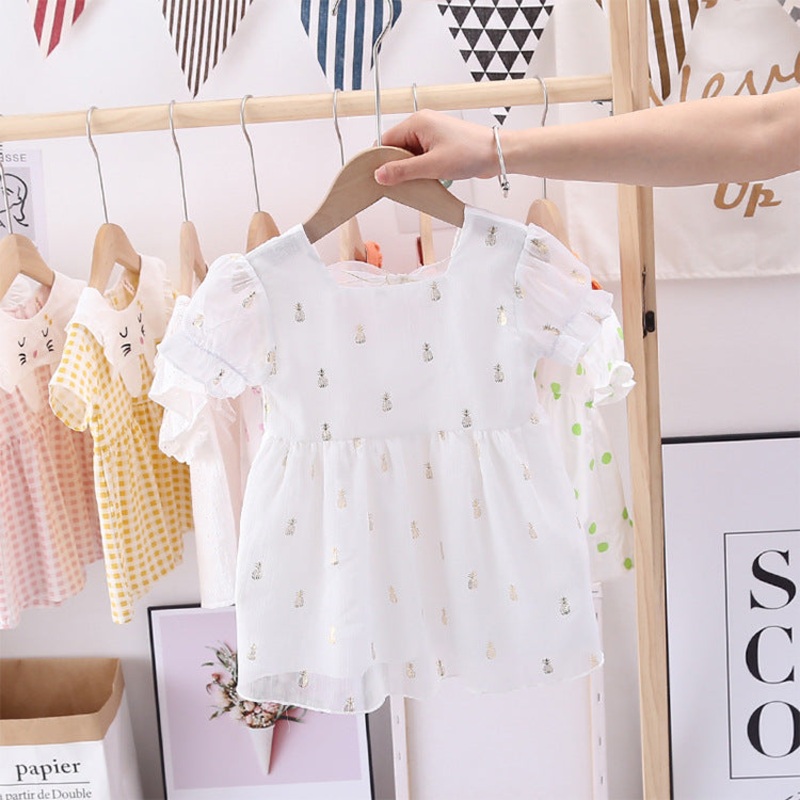 This playful summer dress features a charming pineapple pattern thats perfect for sunny days. Designed with short sleeves and a trendy square neckline, it keeps little girls cool and comfortable while adding a splash of fruity fun to their wardrobe. Ideal