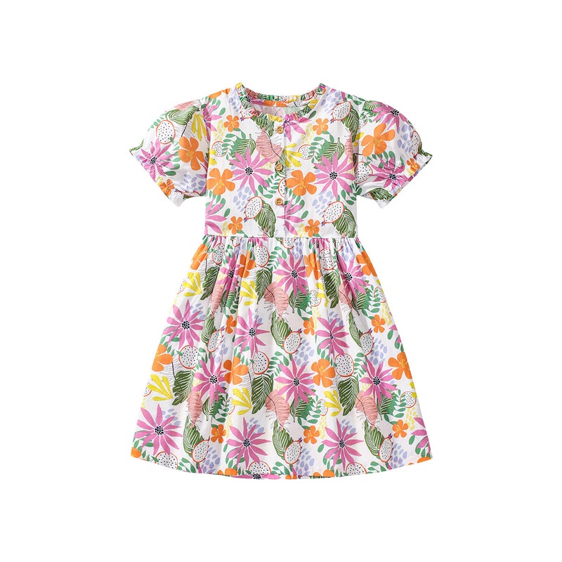 GWIL528532855Summer Colorful Floral Dress for Girls, European and American Cute Flowers Printed Dress