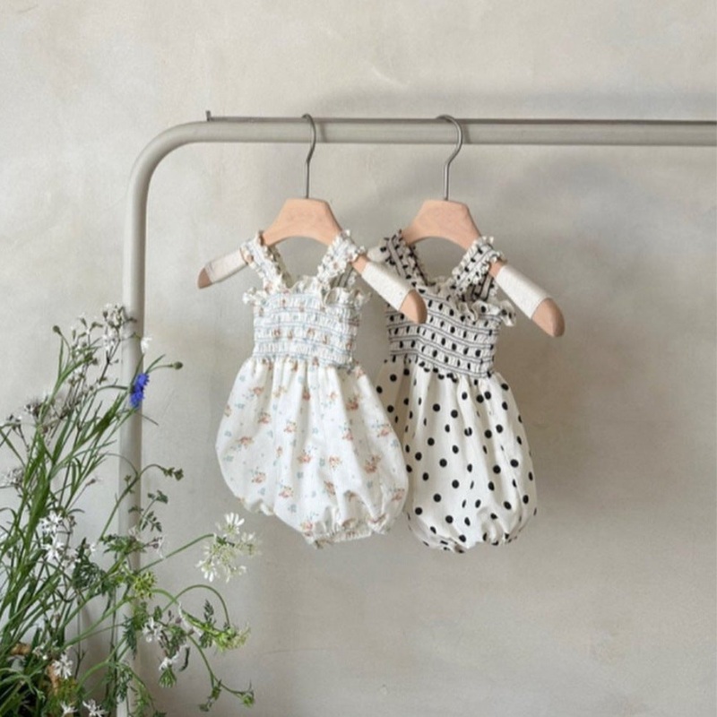 Summer Hot Selling Baby Kids Girls Sleeveless Flowers Pattern or Dots Pattern Princess Onesies