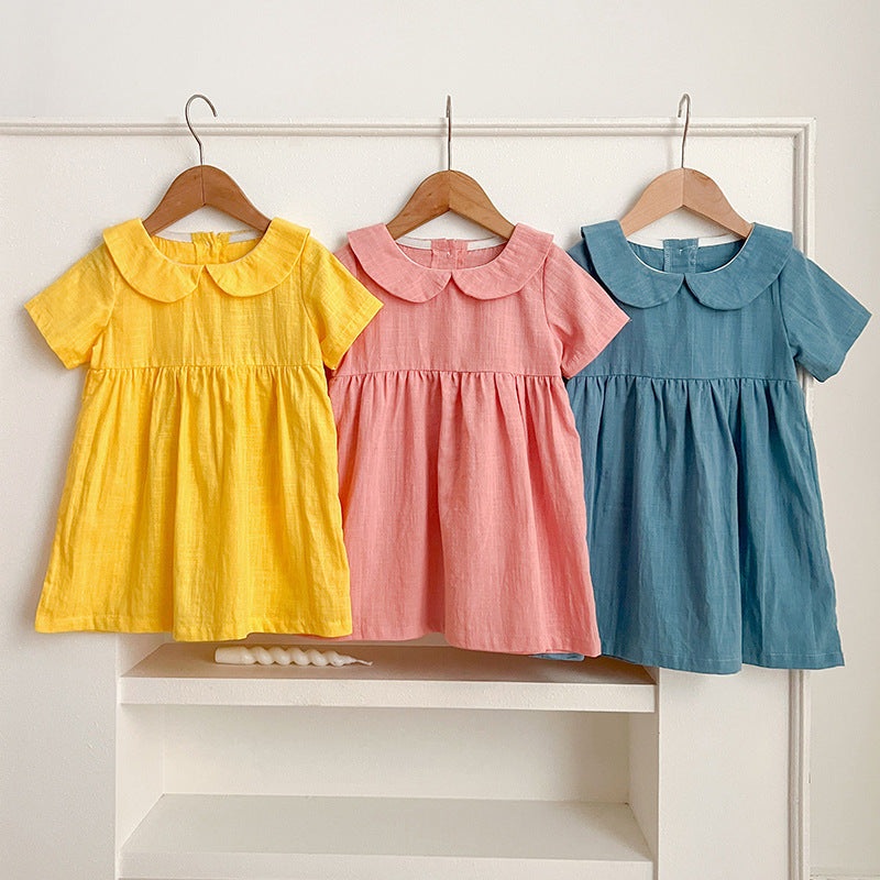 Classic Peter Pan Collar: Adds a sweet, timeless touch to this simple yet elegant summer dress. Short Sleeves & Breathable Cotton: Keeps her cool and comfortable all day with soft, lightweight fabric. Solid Color Versatility: Easy to mix and match with acc