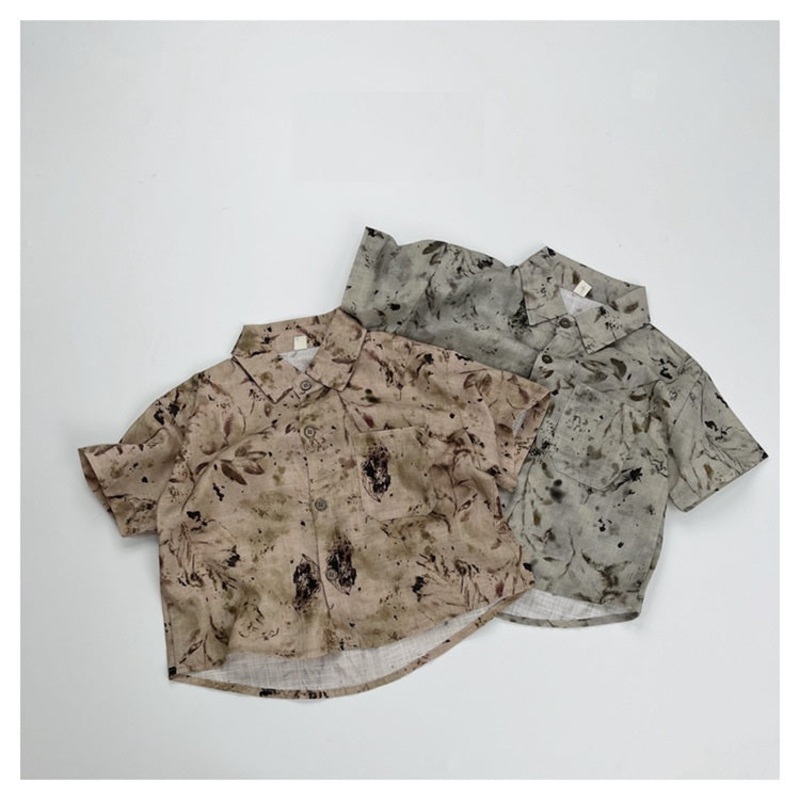 GWIL528537986Summer Kids Unisex Wash-Painting Short Sleeves Turn-down Collar Single Breasted Childrens Shirt