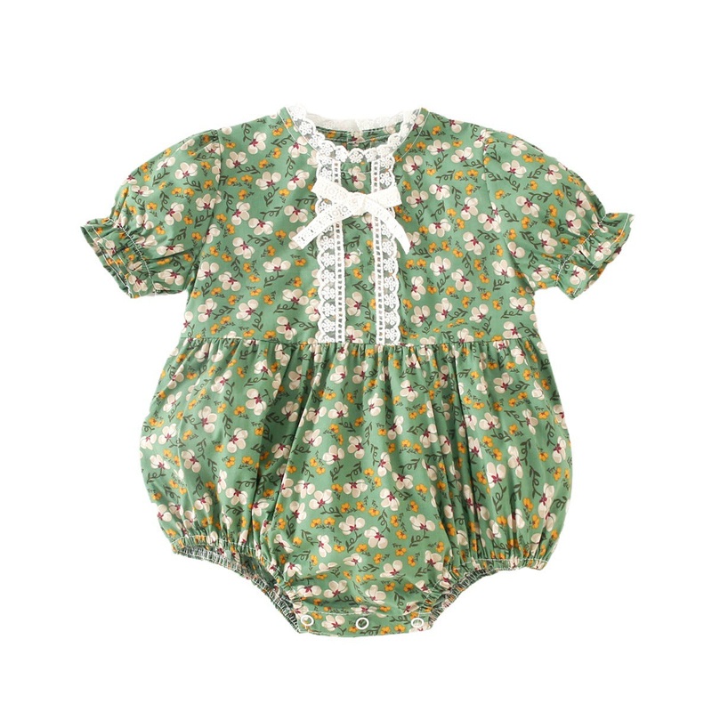 GWIL528535946Summer New Arrival Baby Girls Floral Print Short Sleeves Lace Neck Vintage Onesies