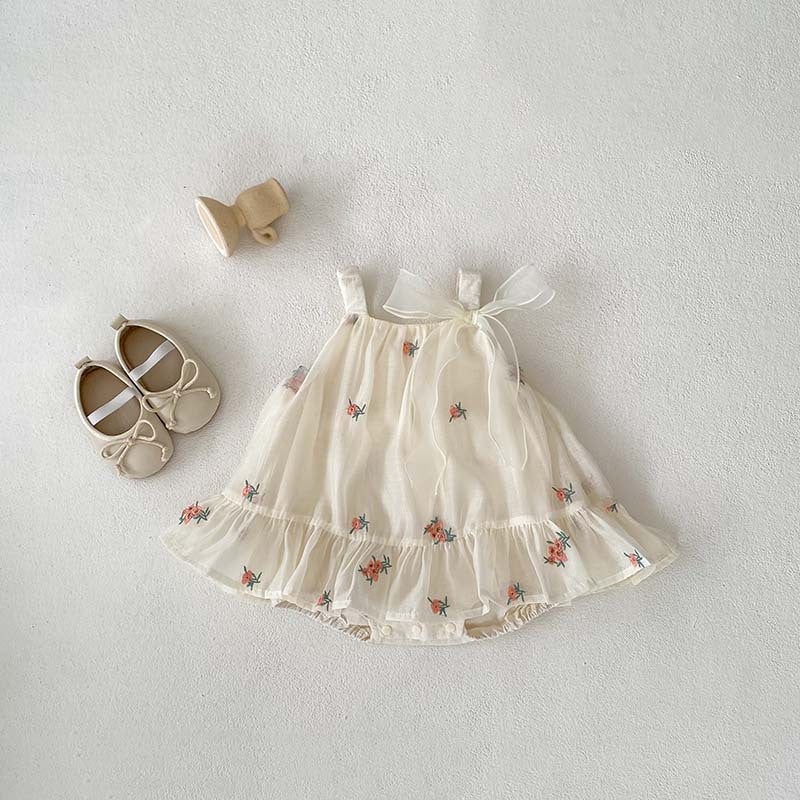 GWIL528536045Summer New Arrival Baby Girls Sleeveless Flowers Pattern Tulle Strap Onesies Dress