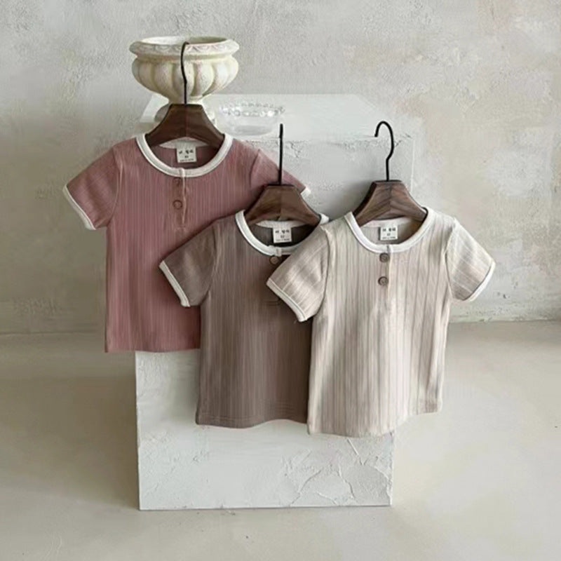 Keep your little one cool and comfy this summer with this adorable unisex baby tee! Featuring a soft crew neck, short sleeves, and stretchy fabric, its perfect for all-day play. The clever double-button design makes dressing up a breeze, while the simple s
