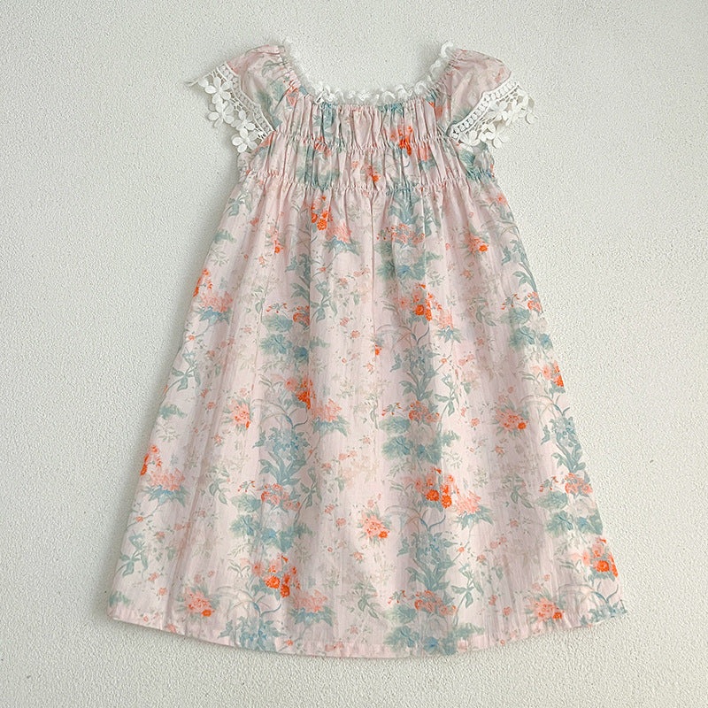 GWIL528535775Summer New Arrival Girls Classic Lace Sleeves Square Neck Floral Pattern Dress