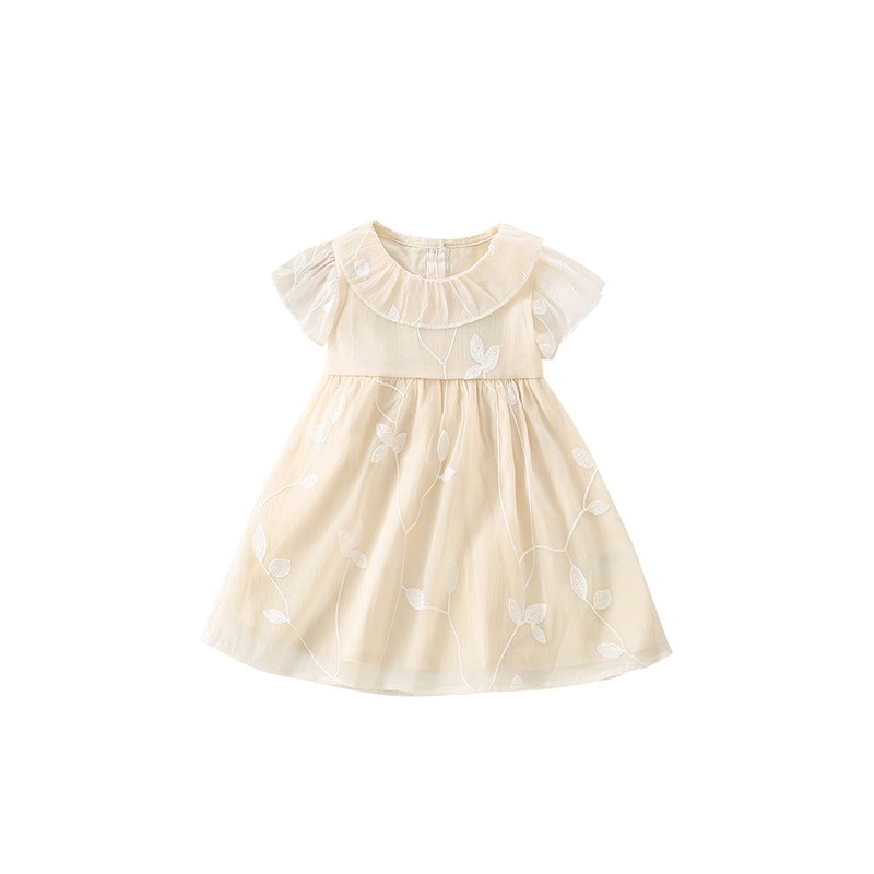 GWIL528535816Summer New Arrival Girls Leaves And Vine Pattern Embroidery Short Sleeves Round Collar Dress