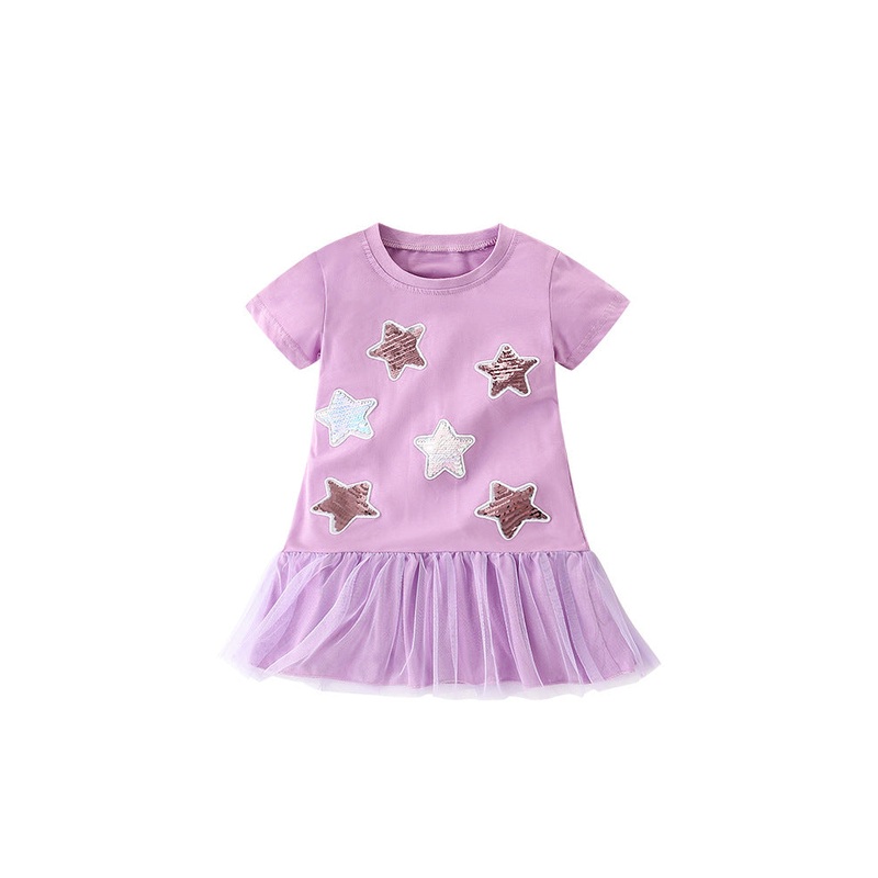 GWIL528535884Summer New Arrival Girls Sequin Star Pattern Short Sleeves T-Shirt Patchwork Dress