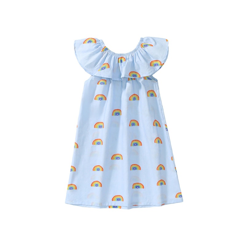 Brighten up sunny days with this playful sleeveless dress featuring a cheerful rainbow print. Perfect for keeping little girls cool and comfortable, its lightweight fabric and fun design make it ideal for summer adventures and carefree fun.Vibrant Rainbow