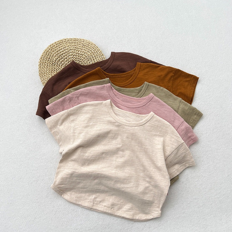 Summer New Arrival Kids Unisex Crew Neck Short Sleeves Thin Solid Color Loose Top Base T-Shirt