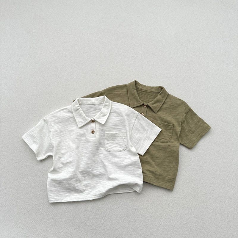 GWIL528535716Summer New Arrival Kids Unisex Soft Comfortable Short Sleeves Thin Solid Color Turndown Collar Polo Shirt