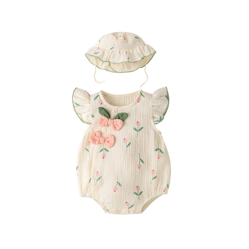 GWIL528535834Summer New Design Baby Girls Light Floral Pattern Embroidery Fly Sleeves Crew Neck Sweet Cute Onesies