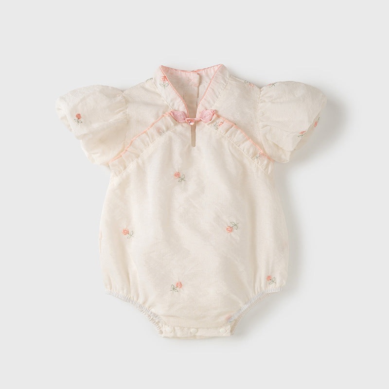 GWIL528535642Summer New Design Baby Girls Light Floral Pattern Short Sleeves Stand Collar Sweet Cute Onesies