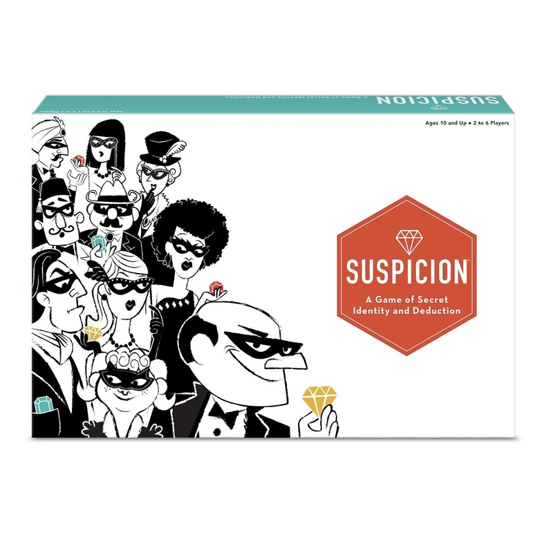 You’re invited to a masquerade party at the Estate Of art collector Baron Whitetooth. Little does he know, you’re a world-class jewel thief. And you are not alone. Keep your IDENTITY a secret as you maneuver through the mansion pocketing priceless gemstones. Observe the other guests and use deduction to unmask the other crooks before they catch You. What you get – suspicion comes with 10 guest movers, 1 game board, 28 action cards, 12 answer cards, 10 invitation cards, 2 dice, 45 gem tiles, 1 deduction pad, 6 pencils, and instructions. Fun play experience – you can play a game in 45 minutes, and it’s perfect for 2-6 players ages 10 and up, Which makes this a perfect gift for families or friends who love to play games together. WARNING: CHOKING HAZARD – Small Parts. Not for children under 3yrs.