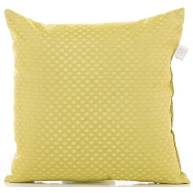 The Urban Cowboy Green Dot Pillow measures 13 inches x 13 inches. It is made of 60% cotton and 40% polyester, exclusive of decoration. The filling is 100% polyester.
