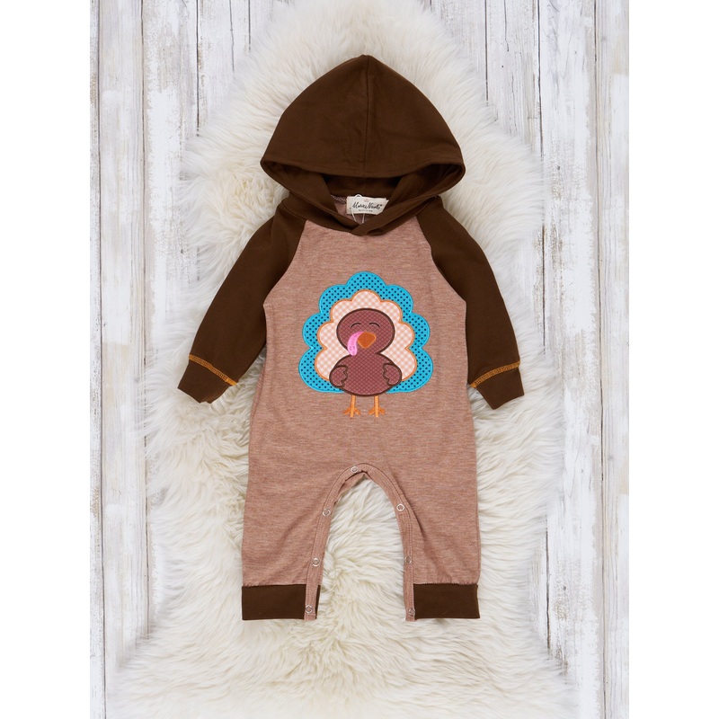 Give your kids the cutest Thanksgiving attire with the Tan Turkey Time Raglan Hoodie Romper! This romper is a must-have for your little gobblers, featuring an embroidered turkey detail and raglan sleeves! So why wait? Get your turkey time on with thissibli