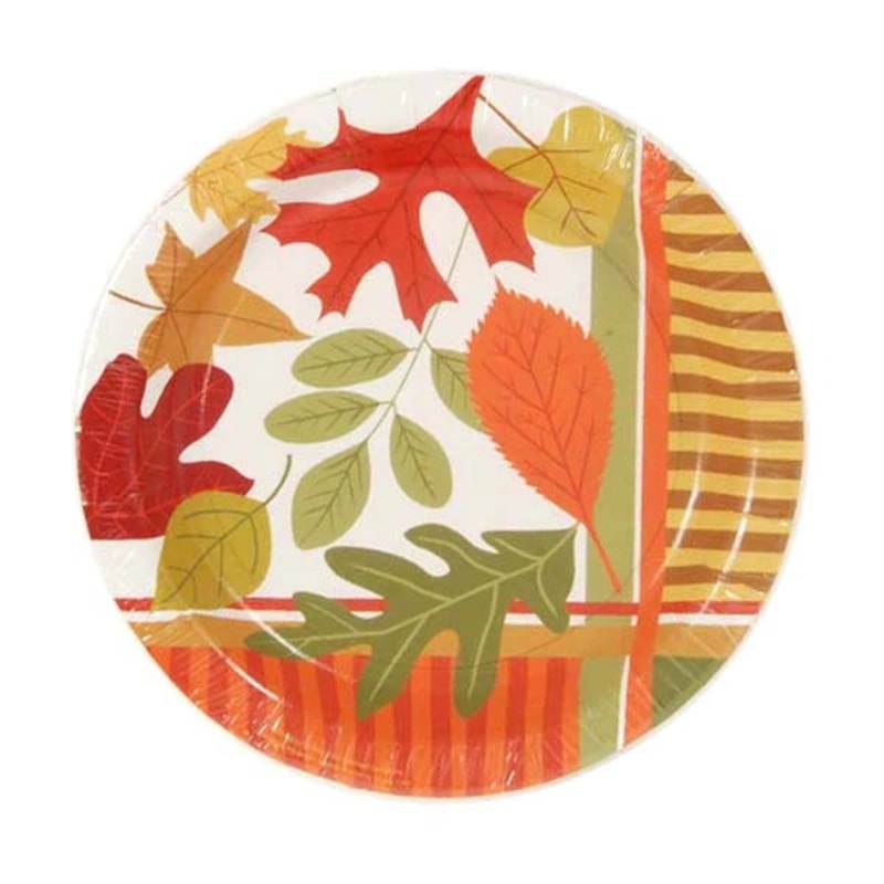 Thanksgiving Maple Leaves & Stripes Paper Plates PW7871