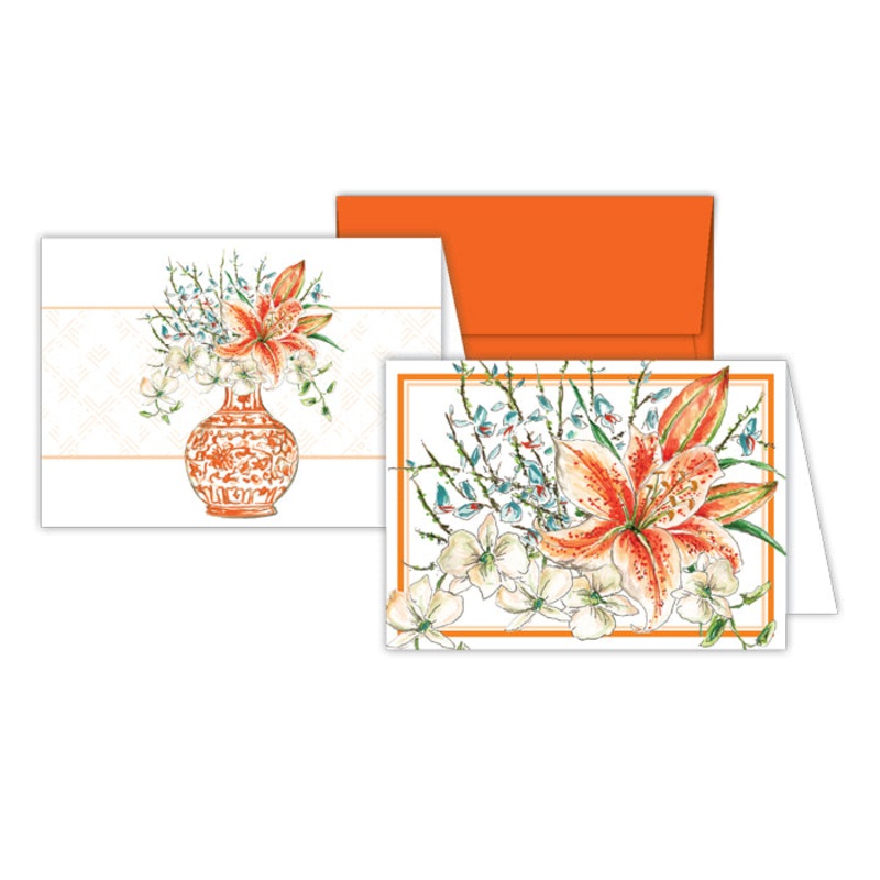 Tiger Lilly and Floral Tangerine Vase Stationery Notes