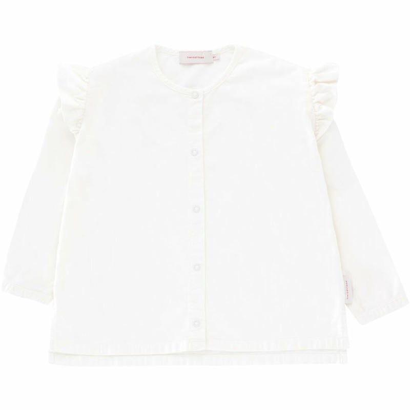 tinycottons light corduroy blouse in off white with shoulder frills and front opening with snaps.97% pima cotton 3% elastanemachine wash cold, do not tumble drymade in portugal.final sale.