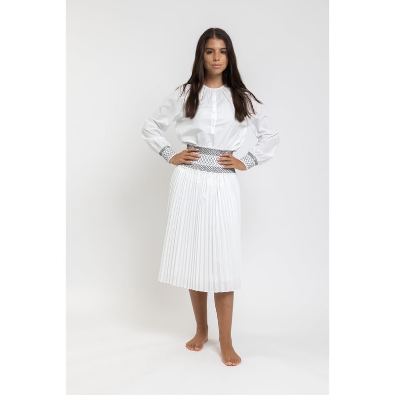 White pleated skirt with smocked waist