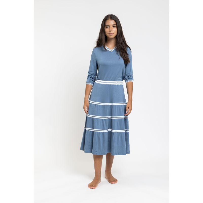 Blue and white maxi sport stripe skirt