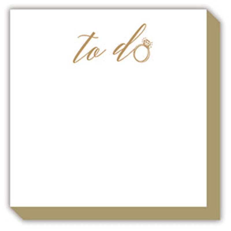 With gilded gold edges, heavy card stock and a coordinating ribbon, this notepad is one of our most popular items! Available in 2 sizes:Luxe pad measures 5.5 x 5.5" with 65 sheets. Mini Luxe is a little taller and smaller measuring 4 x 4" with 100 sheets.G