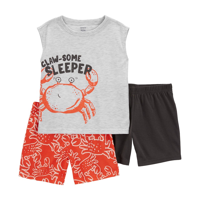 Boys will be extra comfy all night long with these "claw-some" Crab Pajamas. The set comes with a sleeveless shirt with a screen-printed graphic along with two coordinating pairs of shorts. They're made of soft fabric with a comfortable, loose fit.Fabric: